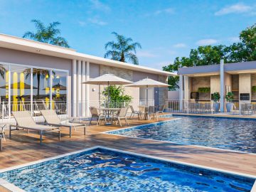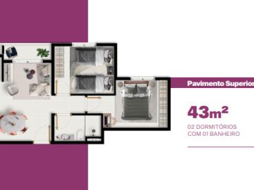 Apartamentos de 2 dormitórios, com opções de suíte e quintal privativo e desfrute de uma área de lazer completa, com piscina, playground, salão de festas e academia.